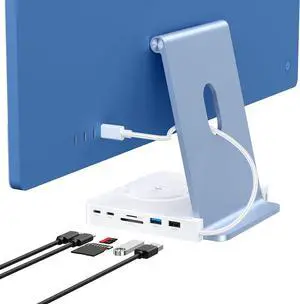 Zoravson 11 in 1 USB C Docking Station with Laptop Stand,100W Power Delivery with USB 3.0, USB 2.0, USB C, Hdmi2.0, Rj45 Ethernet, SD Card Reader/TF Port,Vertical Storage Desk Organizer