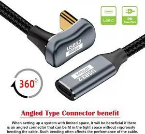 90 Degree Low Profile Angled Type-C USB-C Male to Male USB3.1 10Gbps 100W Data Cable for Laptop Phone