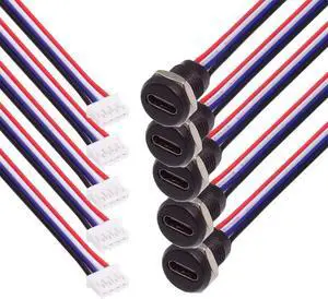 Vszerda 5pcs/Set DIY OEM Type C Female Socket to 4Pin Header Cable Pitch=2.0mm Panel Mount Type DC 5V Power Data