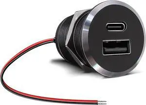 Obeaming RV USB Outlet All-Aluminum QC 3.0 USB-A & USB-C PD Dual High-Speed Charging Socket, Recessed Mount 12V USB Type-A Type-C Charger Station for Camper Van Trailer RV Boat Truck (OBE-USB-C-A-S)