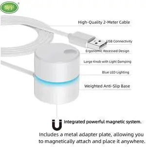 Desktop Volume Controller Knob, USB Volume Control for Computer Speaker Amplifier, Line Knob Audio Adjuster White + Magnetic