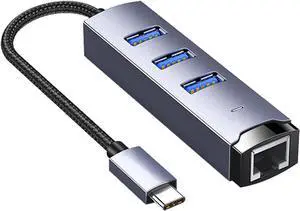 USB 3.0 Hub With Ethernet Adapter, 4-in-1 Gigabit Ethernet to USB Adapter for Laptop, PC, MacBook Pro, iPad Pro, and More Type A Laptops
