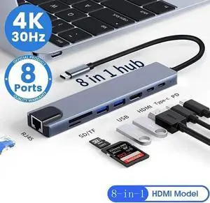 DIXSG 8 in 1 USB C Hub Adapter with 4K HDMI, 100W PD, USB C Port, USB3.0, USB2.0, Ethernet, SD/TF Card Reader, Docking Station Compatible with MacBook Pro/Air USB C Laptops and Other Type C Devices