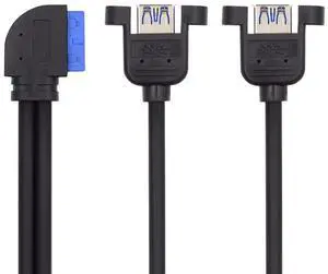 2 Ports USB 3.0 Female to Motherboard 20Pin Male Cable for Front Panel Screw Mount Type 30cm 90 Degree UP Angled