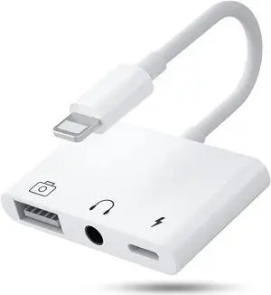 Usb Camera Adapter For Iphone , 3.5Mm Headphone Jack Adapter, 3 In 1 Usb Female Otg Adapter With Charging Port, Support Hub, Midi Keyboard, Mouse, Camera, Usb Ethernet Adapter, Plug And Play.