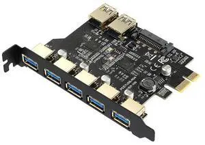 USB 3.2 expansion card, 7-port adapter, 5-port + 19-pin front-mounted main control, D720201 dual-core, GEN1, 5Gbps,5 ports + 19-pin - Large 4-pin power port