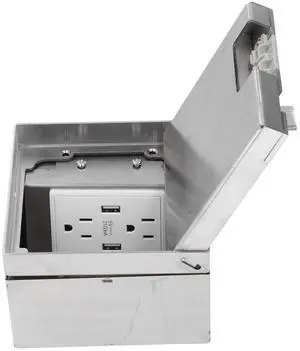 Recessed Floor Outlet 4. 72" x 4. 72" x 3. 94" 2-Gang with 4. 8a USB Chargers 20 Amp Floor Receptacles Round Hidden Outlet Kit Electrical Waterproof Box, Etl Listed(1 Pcs,Silver)