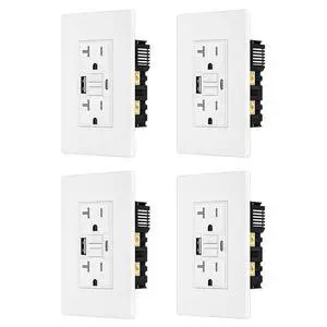 4Pack BRILLTECH 20AMP GFCI Outlet with 4.8A/24W Type A & Type C USB Charging Ports, Self-Test, LED Indicator, Tamper Resistant, GFCI Receptacle Outlet, Screwless Wall Plate Include, ETL Listed, White