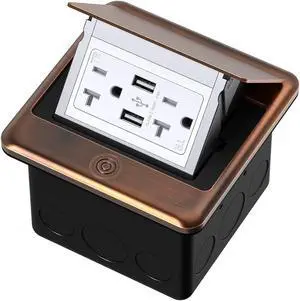 KYHSHJ Professional Pop-up Floor Power Outlet Box with USB 5V/4.8A Socket, 20 Amps Interference-Resistant Socket, Corrosion-Resistant Hardware, ETL Certified, Bronze