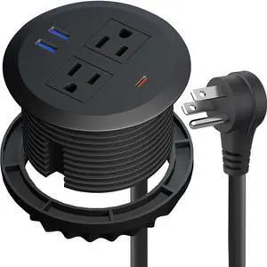 2 Pack Desk Power Grommet with Fast Charging USB C,Fits 3-1/8" Holes.Fadossu Desktop Round Recessed Power Bar Outlet with 2-AC Outlet,2-USB Port,Flush-Mount for Desk Couch End Table,6.56FT,Black