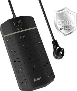 SUPERDANNY Surge Protector Power Bar, 5000 Joules, 13 Widely Spaced Outlets with 2 USB-C PD 20W & 2 USB-A Fast Charging, 6Ft Mountable Flat Plug Extension Cord for Office Supplies Home Dorm, Black