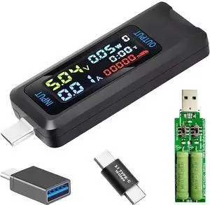 USB Tester Type-C Interface Multi-Functional Digital Power Capacity Tester Voltage Current Meter DC 4.5-36V 0-5A Supports Fast Charging Protocols with Type C Connector Adapter USB Load
