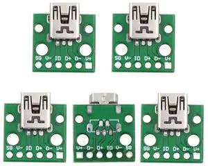 Vszerda 5pcs USB2.0 Mini-B Female Receptacle Socket Connector DIY OEM Horizontal with PCB Board Mounting Assembly Solder Type 480Mbps