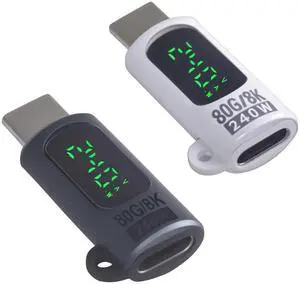 BUCIER 80Gbps USB C Adapter with Digital Display, Thunderbolt 4 Connector 240W, 8K@60Hz, USB C Watt Meter Display Adapter for iPhone 16/15 Series,Thunderbol5/4/3, Game Controller, Black (2-Pack)