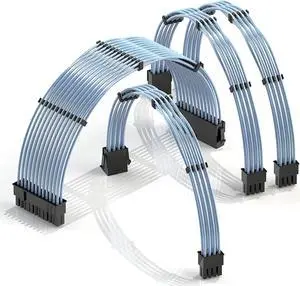 LINKUP - 30cm PSU Cable Extension 18AWG Oxygen Free Copper (OFC) Teflon Jacket Custom Mod GPU PC w/Comb Kit | 1 x 24 P (20+4) | 2 x 8 P (4+4) CPU | 2 x 8 P (6+2) GPU Set | 300mm - Blue