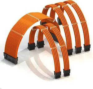 LINKUP - AVA 50cm 6-Pack PSU Cable Extension Sleeved Custom Mod GPU PC Braided w/Comb Kit - Compatible with RTX3090 | 1 x 24 P (20+4) | 2 x 8 P (4+4) CPU | 3 x 8 P (6+2) GPU Set | 500mm - Orange