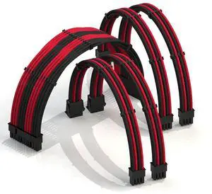 LINKUP - 30cm Super Soft and Flexible PSU Cable Extension Sleeved Custom Mod GPU PC Braided w/Comb Kit | 1 x 24 P (20+4) | 2 x 8 P (4+4) CPU | 2 x 8 P (6+2) GPU Set | 300mm - BlackRed