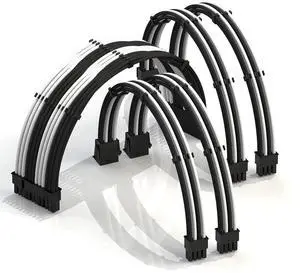 LINKUP - 50cm Super Soft and Flexible PSU Cable Extension Sleeved Custom Mod GPU PC Braided w/Comb Kit | 1 x 24 P (20+4) | 2 x 8 P (4+4) CPU | 2 x 8 P (6+2) GPU Set | 500mm - Blackwhite
