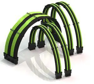 LINKUP - AVA 50cm PSU Cable Extension Sleeved Custom Mod GPU PC Braided w/Comb Kit - Compatible with RTX3090 | 1 x 24 P (20+4) | 2 x 8 P (4+4) CPU | 3 x 8 P (6+2) GPU Set | 500mm - Green
