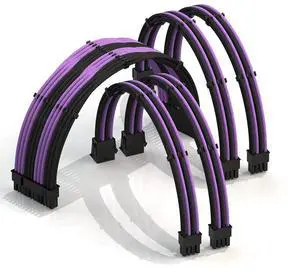 LINKUP - AVA 50cm PSU Cable Extension Sleeved Custom Mod GPU PC Braided w/Comb Kit - Compatible with RTX3090 | 1 x 24 P (20+4) | 2 x 8 P (4+4) CPU | 3 x 8 P (6+2) GPU Set | 500mm - Purple