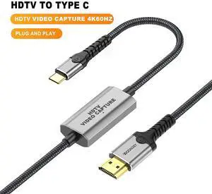 4K60 HDMI-Compatible Video Capture Card Live Recording Box 1080P 60fps USB A/C Video Card for Game Live Streaming for PS4 Computer Phones, works with PC and Mac