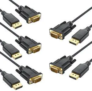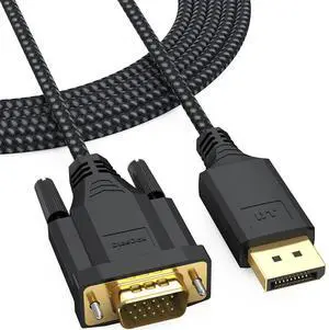 DisplayPort to VGA Adapter, Hannord DP to VGA Cable 6 Feet Cable Male to Male 1080P HD Gold-Plated Cord Compatible for Lenovo, Dell, HP, ASUS, Desktop, Laptop, for Monitor, Projector, Black