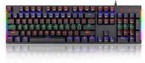 Portable LED Backlit Wired Mechanical Gaming Keyboard, Aluminum Base, 104 Keys and 12 Backlit Lights Waterproof, for Home/School/Office