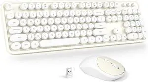 Wireless Keyboard and Mouse Combo - GEEZER Cream-White Full-Sized Colorful Keyboard 104 Keys - USB 2.4 G Receiver Plug and Play with Round Keycap Typewriter Keyboards, for Windows, PC, Laptop, Desktop