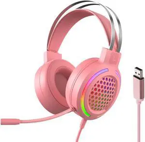 Wired Headset Gaming Headset Colorful RGB Light Headphone with 360° Noise Reduction Microphone for PC Laptop Pink Gaming Headset