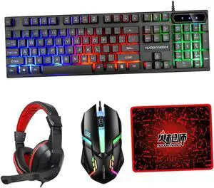HOMOCONO 1set Wired Gaming Keyboard and Mouse Backlit Headset and Mouse Pad Ergonomic Design for Comfortable