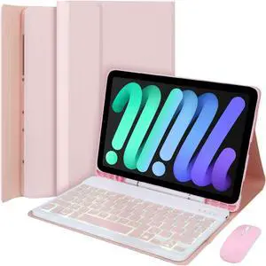 EHLCYS Keyboard Case for iPad mini (A17 Pro) 7th Generation 2024 / iPad mini 6th Gen 8.3 Inch, 7-Color Backlit Detachable Bluetooth Keyboard, Ultra-Thin Case with Pencil Holder and Mouse,Pink
