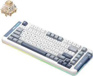 AKC087 Wireless Mechanical Keyboard, 87 Keys Compact TKL Gaming Keyboard, BT5.0/2.4G/Wired 75% Keyboard, RGB Hot Swappable Mechanical Keyboard OEM Profile Yellow Switch for Windows Mac Laptop