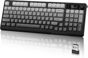 LexonElec M96 Wireless Keyboard, Low Profile Quiet Typing Membrane Gaming Keyboard with Smart Display & Knob, RGB Backlit, USB C Rechargeable, 94 Keys PBT Keycap for Windows PC,Mac,Linux-Moonlit Night