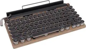 LICAEVEY Wireless Typewriter Keyboard, Hot Swap Retro Mechanical Keyboard, BT Punk Round Keycap Mechanical Keyboard with 14 Backlit Modes for Tablet Computer Phone (Wood Color)