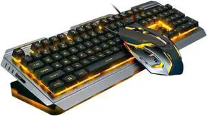 OSALADI Wireless Keyboard and Mouse Mechanical Keyboard Led Backlight USB Tungsten