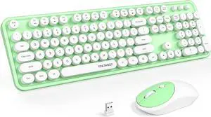 KNOWSQT Wireless Keyboard Mouse Combo - Green-White Full-Sized 2.4 GHz 104 Keys Typewriter Keyboard, Flexible Round Keycap and Optical Mouse for Windows, Computer, PC, Laptop, Desktop, Mac