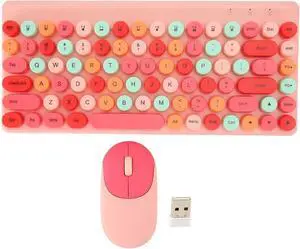 Wireless Keyboard and Mouse, Compact and Comfortable Colorful Keyboard Mouse, Unique Appearance 86 Keys Wireless, for PC Laptop Computer (Pink)