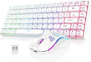 RedThunder K84 Wireless Keyboard and Mouse Combo, Rainbow Backlit Rechargeable Battery, 75% Layout 84 Keys TKL Ultra Compact Gaming Keyboard & Lightweight 3200 DPI Honeycomb Optical Mouse (White)