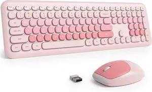 iRoboosta Pink Colorful Wireless Keyboard and Mouse Combo Set, 2.4GHz Retro Typewriter Aesthetic Keyboard, Full Size Cute Keyboard with Number Pad, Home and Office Silent Keyboards (Pink)