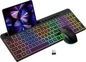VBESTLIFE Wireless Keyboard and Mouse Combo, 115 Keys RGB Backlight 2.4G Wireless Keyboard with Mouse, Adjustable Stand Slot for 7.79 Inch Devices