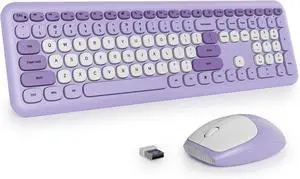 surmen Purple Keyboard and Mouse Wireless, Cute Wireless Typewriter Keyboard, Full Size Slim Silent Round Keys Aesthetic Keyboard for Home and Office(Colorful Purple)