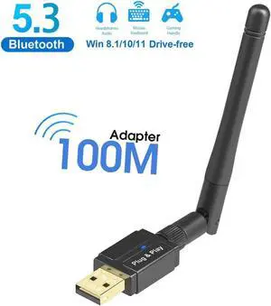 Long Range 328FT/100M Bluetooth USB Adapter 5.3 for PC, Drive-Free Bluetooth 5.3 Adapter for Windows 11/10/8.1, 5.3+EDR Bluetooth Wireless Transmitter Receiver for Desktop Laptop PC (Black)