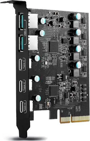 PCIE to USB 3.2 Gen2 10G Expansion Card, 5 Port 3X USB Type-A and 2X Type-C Ports, Self-Powered, USB3.2 Hub Controller Adapter for Windows 10/11