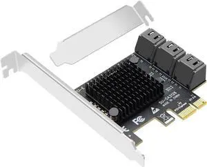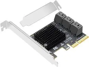 Vszerda 6-Port PCIe SATA Expansion Card, 6Gbps SATA III Controller with 6 Cables & Low Profile Bracket, PCIe x4, Support 6 Devices for PC/Server/NAS
