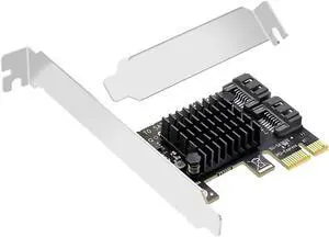 Vszerda 4-Port PCIe SATA Expansion Card, 6Gbps SATA III Controller with 4 Cables & Low Profile Bracket, PCIe x4, Support 4 Devices for PC/Server/NAS
