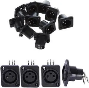 20 Pcs Black XLR Connector: 10 Pcs Male Plug Straight Terminal Panel Mounted Connector & 10 Pcs 3 Pin Female Jack Panel Mount Ch