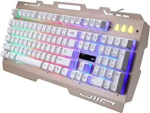 QIYUDS Computer Keyboard 104 Keys, Comfortable, USB Keyboard,RGB Lighting,Multi-Media Controls, Splash-Proof, with Full Buttons, Mechanical Keyboard, for Gaming and Work (Color : White)