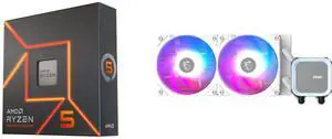 PCCOOLER CPS C3 T500 ARGB PC Case, Dual-Chamber Mid-Tower ATX Case, Desktop Computer Case w/ 6 ARGB Fans Pre-installed w/ Fan Hub, Column-Free Design, Tempered Glass, USB 3.1 Gen 2 Type-C, White and PCCOOLER CPS DS360 AIO CPU Liquid Cooler, 360mm Radiator, 310W TDP, Dual Chamber Pump, ARGB LEDs & Digital Display, Aluminum Pump Cover, for Intel LGA 1851/1700/1200/115X & AMD AM5/AM4, Black - $319.98