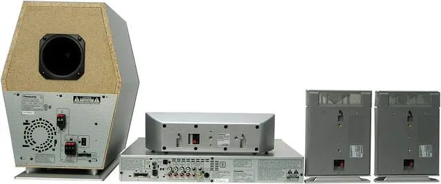 | Package Contents | Progressive Scan 5-DVD Changer / Receiver 2 Tall-Boy Front Speakers with Stands 1 Center Channel Satellite Speaker 2 OmniCast Surround Speakers 1 Active Subwoofer |