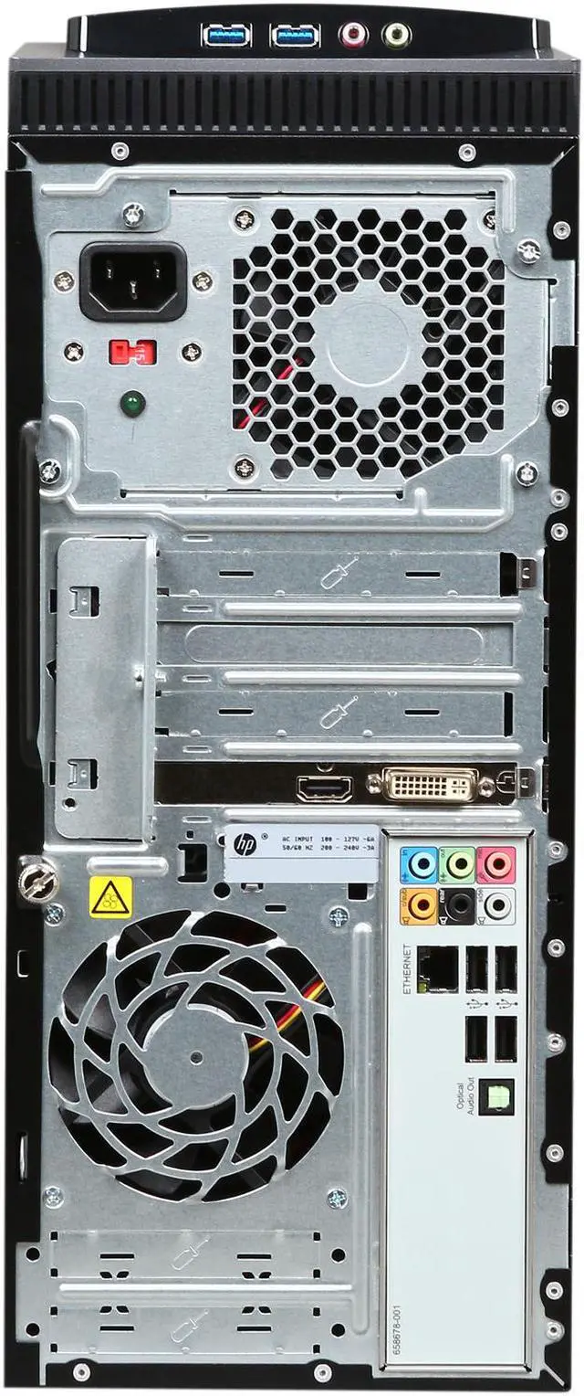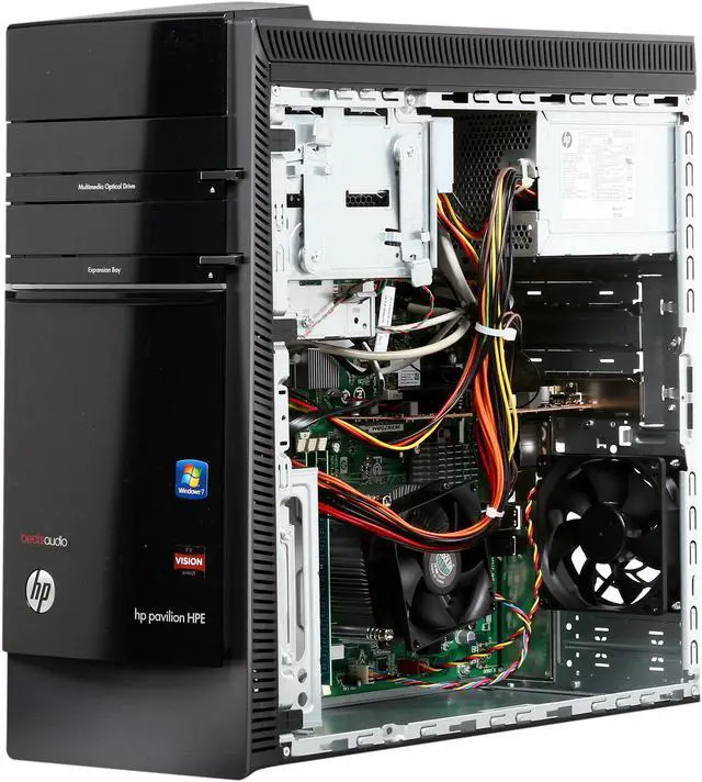 Enjoy excellent performance and a sleek design from the HP Pavilion HPE h8-1234 Desktop PC. With a 1 TB hard drive, 10 GB of DDR3 memory, built-in wireless networking & bluetooth, and top of the line AMD Radeon HD graphics, this PC is ideal for both professional and entertainment use. Users can expect easy web access, stunning picture and video quality, 3.5 Ghz processing speed, and plenty of multimedia and document storage space. Pre-loaded with Windows 7 Home Premium, notable hardware features of this system include: